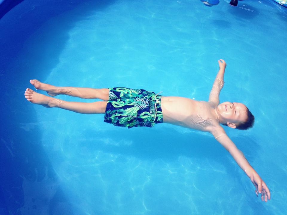 Working on his survival skills back float.